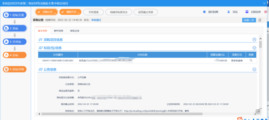 “2021年8月10日,湖北恩施州来凤县5座小型水库除险加固工程设计服务项目在代理机构评标室顺利开标,标志着全州首个社会代理政府采购项目全流程电子化在来凤县实现。”